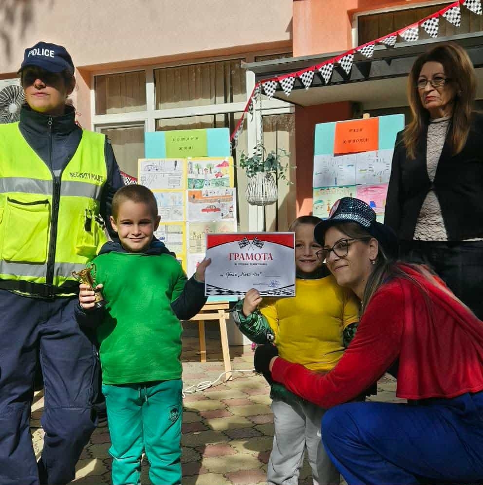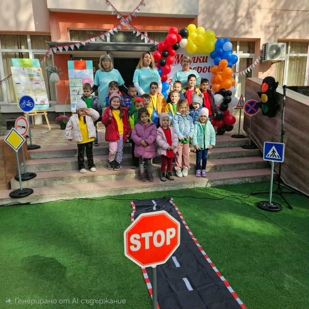 Децата от градина „Радост“ показаха, че да познаваш правилата на пътя е истинска суперсила. Празникът премина под мотото „Малки герои, големи победи“, а любимият Супер Марио, изигран от г-жа Виржиния Йорданова, поведе малките участници през весели и поучителни игри, посветени на безопасността на движението. Г-жа Глория Иванова, музикален педагог и ръководител на мажоретния състав, се погрижи за прекрасната музикална и танцова атмосфера, която озари целия празник. Г-жа Косева, в ролята на регулировчик, показа как с усмивка и внимание се управлява движението по пътя.