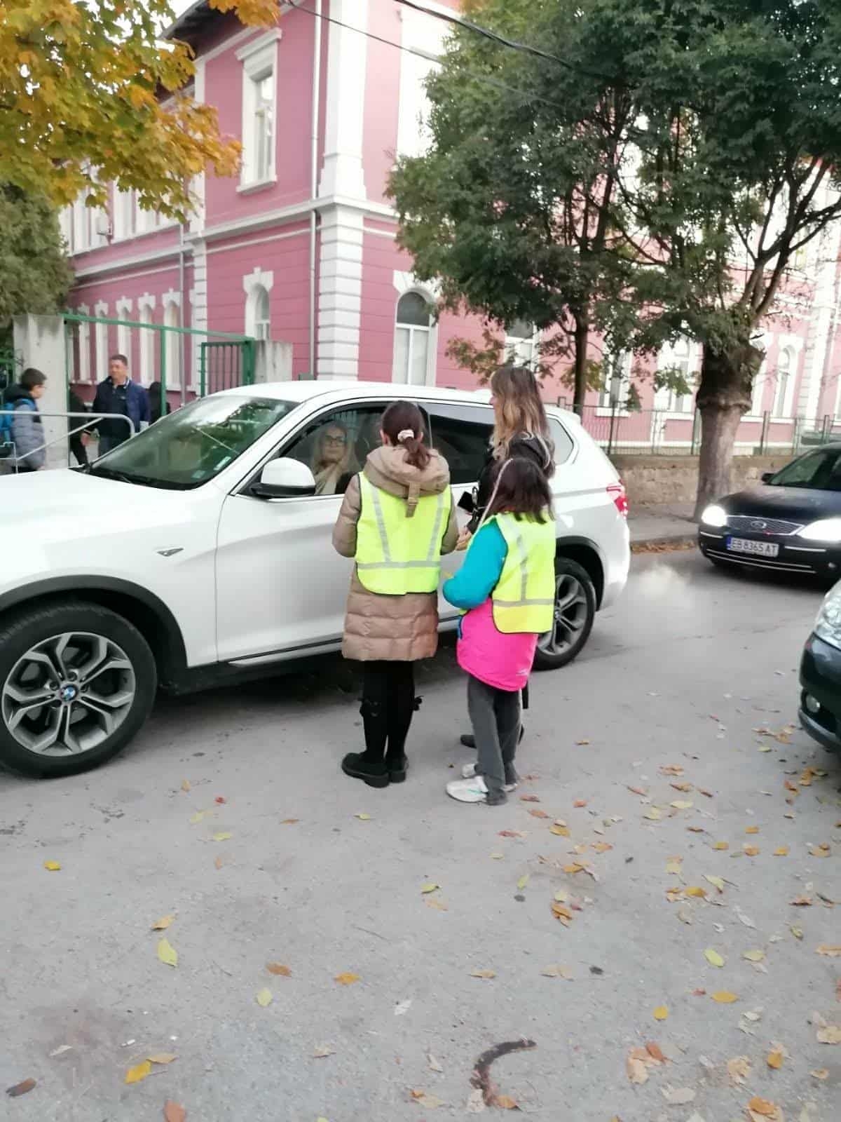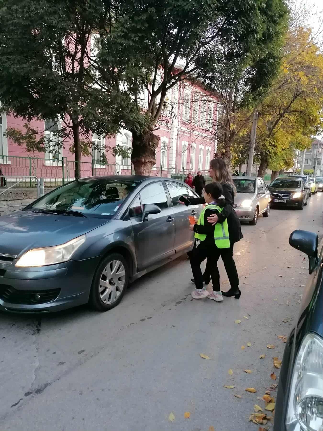 Магдалена и Инджи от 2 „а“ клас, както и Александра и Симона от 4 „а“ клас също се включиха в инициативата. Те раздаваха есенни листа с призиви за толерантност и безопасност, носейки радост и усмивки на шофьорите.