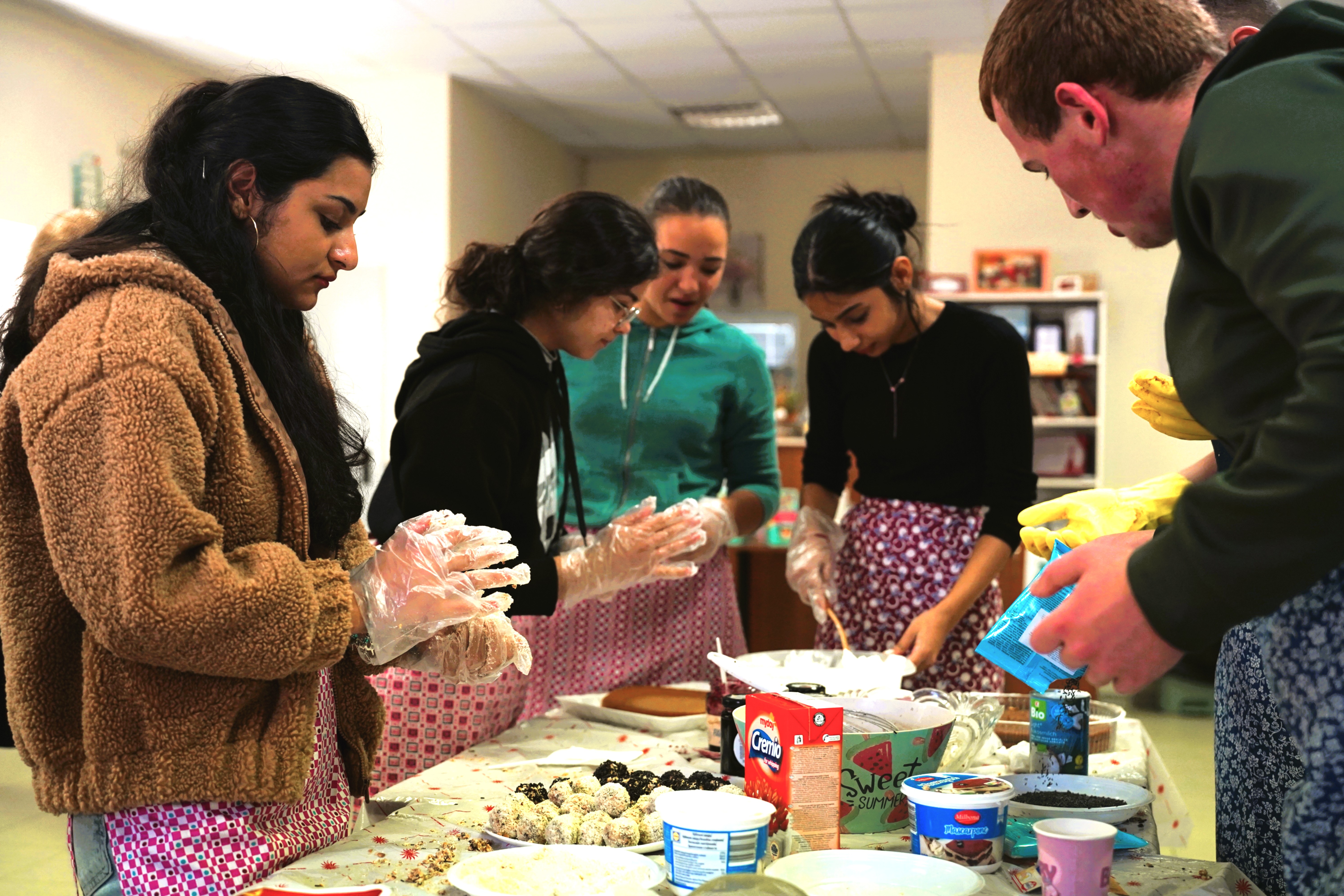 Децата също се включиха активно в приготвянето на торти и веган бонбони. Те украсиха блатове с кремове, сладка и плодове, а после научиха как с натурални съставки да се направят вкусни и здравословни десерти. Всяка дейност се превърна в урок – не само по кулинария, но и по търпение, уважение и взаимопомощ.