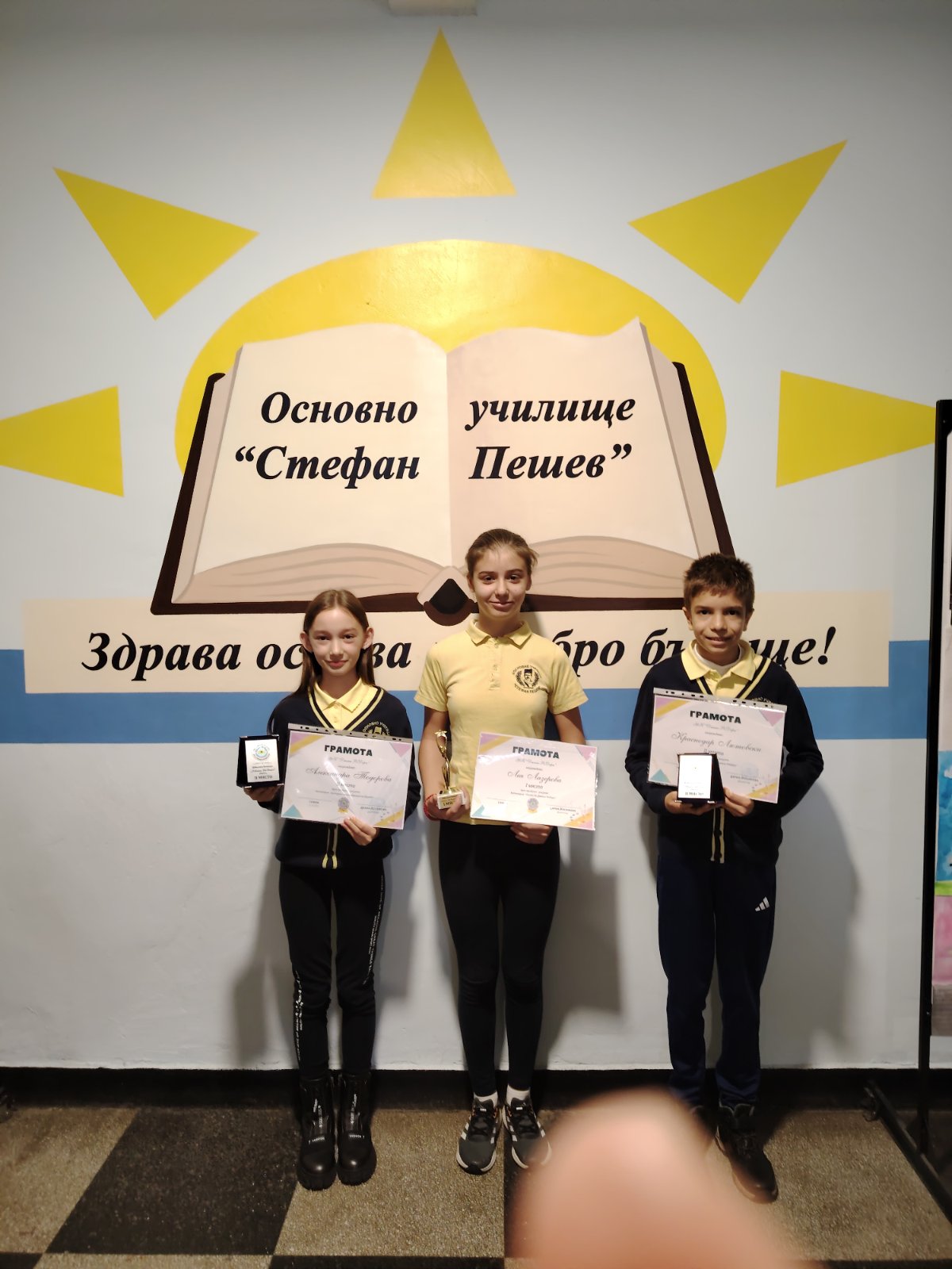 Три деца от ОУ „Ст. Пешев“ бяха отличени с грамоти от Националния конкурс за литературна творчество, арт и медиен продукт, част от честванията, посветени на 25-годишнината от създаването на УК „Джани Родари“ и 105 години от рождението на Джани Родари – вдъхновител на творчество, детско въображение и хуманистични ценности.