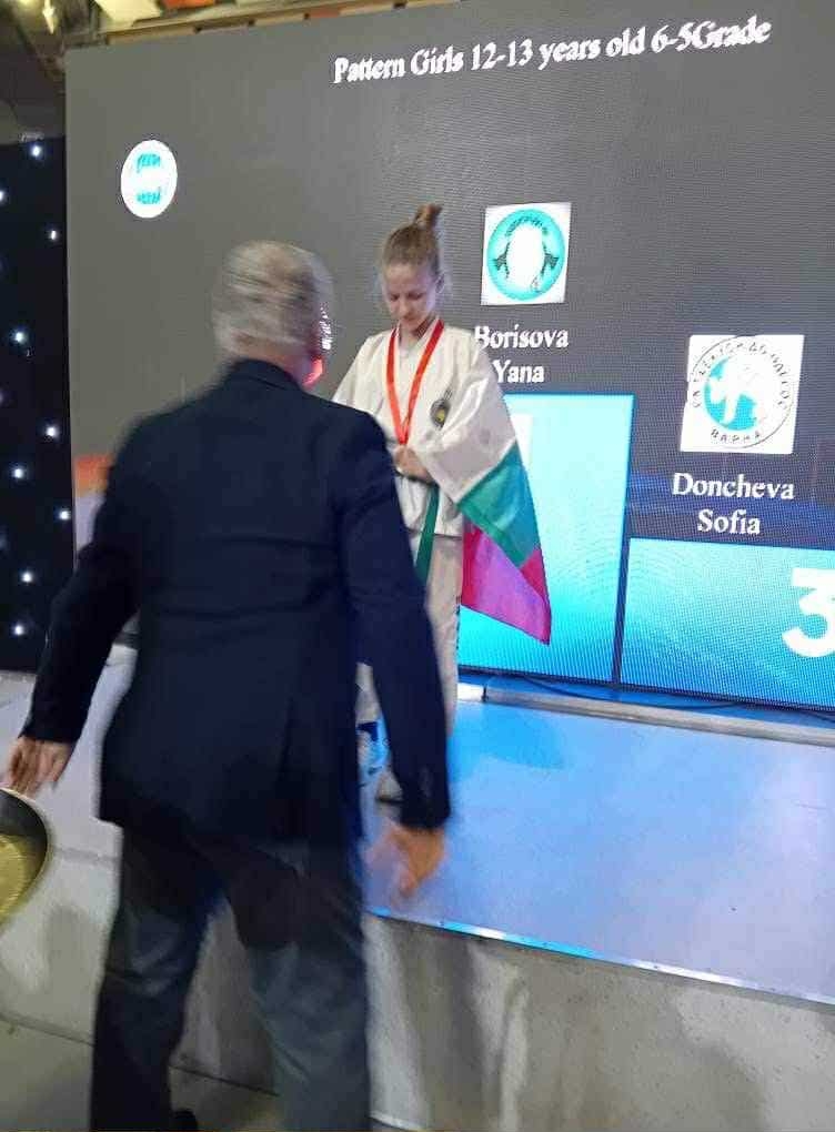 Въпреки изцяло обновения състав на отбора, заради напусналите зрелостници и студенти, младите спортисти се справиха отлично. Две златни отличия в дисциплината форма завоюваха играещият треньор Найден Ганев /форма, червени колани, юноши старша възраст/ и Яна Борисова /момичета 11-13 г, зелен колан/. Безупречни бяха и двамата национали на клуба – Катерина Маринова и Александър Георгиев, които стигнаха до финалите в категориите си. За съжаление и двамата не успяха да спечелят и останаха втори, но за това мини Европейско първенство резултатът им е страхотно постижение. Сребърен медал в спаринга завоюва и Станислав Шерифов, дебютант на такъв голям форум. Той остана втори при момчетата 10-11 г, до 55 кг. Сребро взе и Денис Курдов /спаринг, момчета до 60 кг/. Бронзови медалисти станаха Дарина Георгива /форма, момичета, зелени колани/, Яна Борисова /спаринг, момичета до 35 кг, /, Денис Курдов /форма, момчета сини колани/ и Елица Пеева, която след победа и загуба остана трета на спаринг, девойки старша възраст, до 60 кг. С бронз се окичи и Ивона Иванова /девойки младша възраст, до 55 кг/.