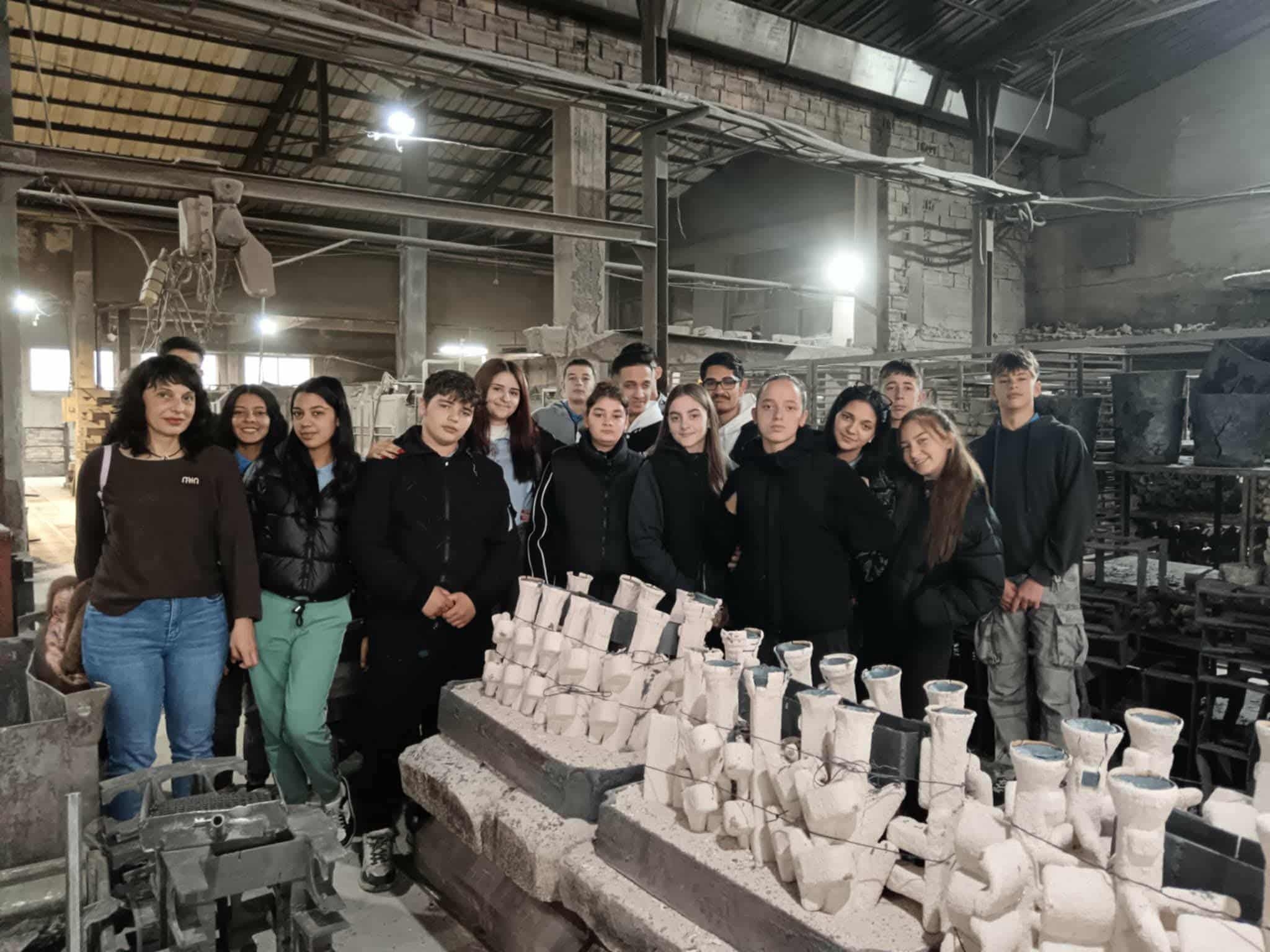 По време на посещението деветокласниците наблюдаваха отблизо процеса на леене на метални заготовки и се запознаха с реалното приложение на изучавания материал. Г-н Стефан Цонев, производствен директор на фирмата, представи в детайли етапите на работа и съвременните технологии, използвани в производството.