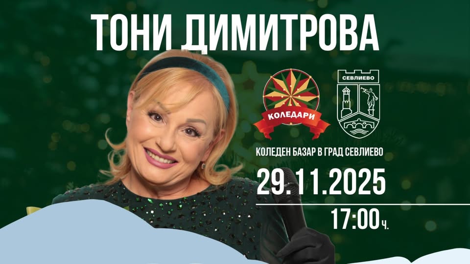 Първият звезден гост на Коледари ще бъде легендата Тони Димитрова! Елате на площад "Свобода" на 29.11.2025 г., от 17ч., за да се насладим заедно на най-големите и хитове в празнична атмосфера в компанията на любими хора! ВХОД СВОБОДЕН!