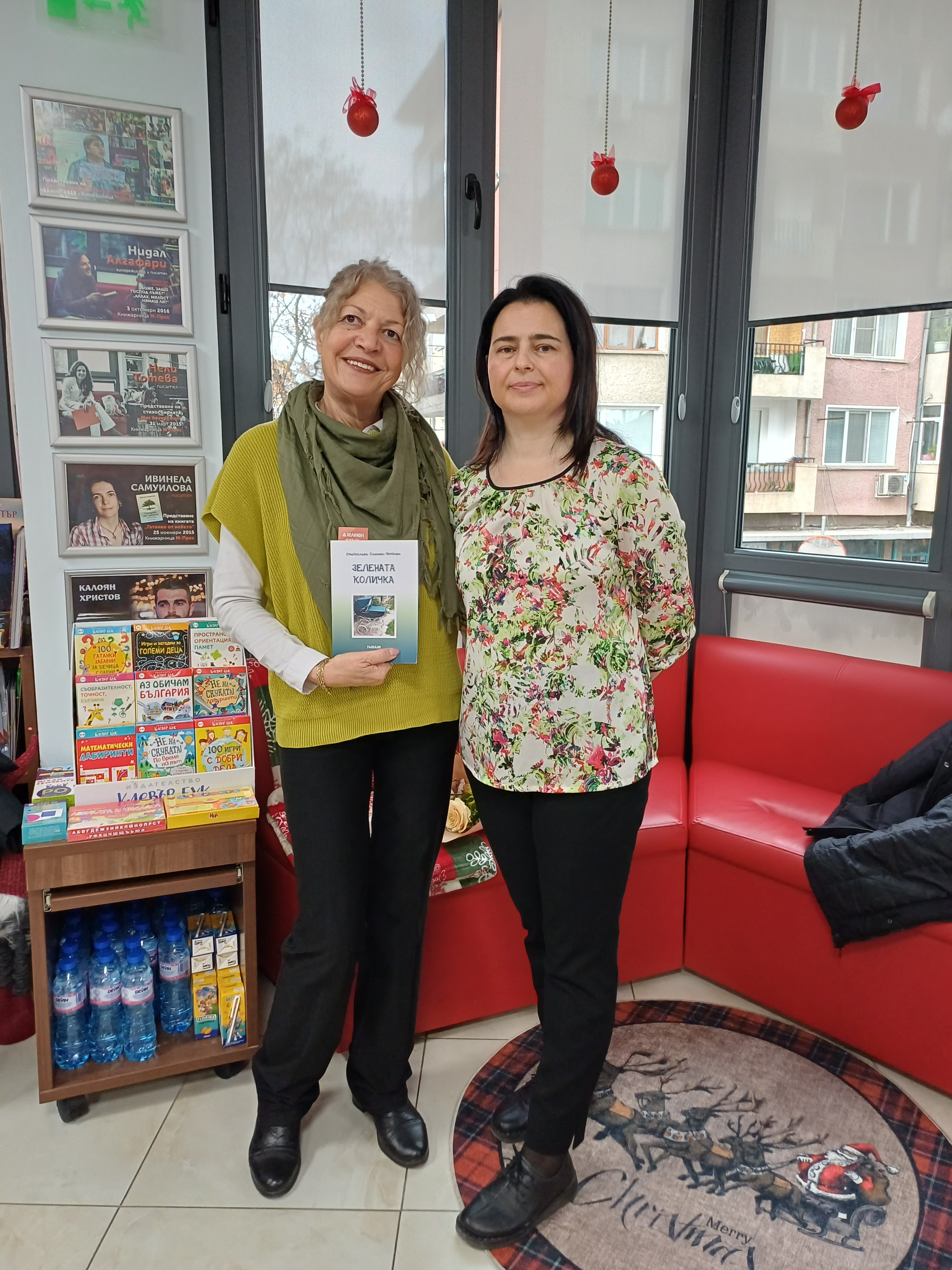 Инициативите по случай Деня на книгата – 21 ноември, продължиха и следващата седмица за деветокласниците с класен ръководител Даниела Йорданова. На 26.11.2025г. те проведоха своя час по Български език и литература в книжарница ,,М-прес“, където се срещнаха със Станислава Славова – Петкова, автор на сборника с разкази „Зелената количка“. Урокът се проведе в много приятна обстановка – сред книгите на втория етаж на книжарницата. Учениците бяха се подготвили предварително – разделени на групи, те бяха се запознали с няколко разказа от книгата и показаха своето любопитство, като задаваха въпроси, свързани с репликите на героите, със сюжета и с посланията на текста. Писателката беше приятно изненадана от интереса и предварителната подготовка на деветокласниците и с радост отговаряше на въпросите им.