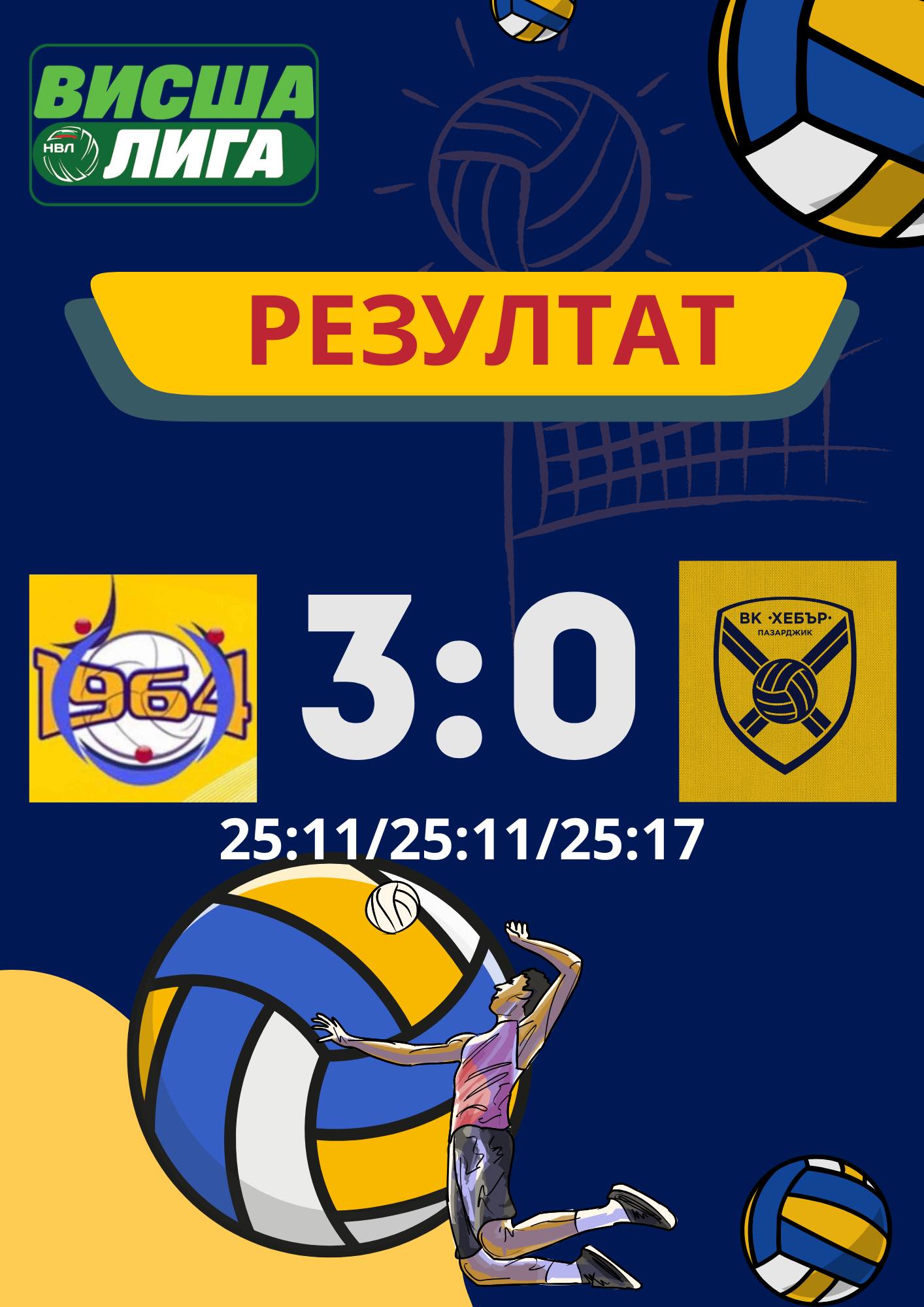 „Категорична победа, без проблеми в нито един от геймовете. Стартирахме с Никола Карагьозов /разпределител/, Виктор Младенов /диагонал/, Ивайло Стойков и Георги Василев /посрещачи/, Михаил Петров и Кристиян Косев /центрове/, Галин Иванов /либеро/, от пейката се появиха Калоян Мичев и Николай Златев. Последният направи дебют в мъжкия волейбол. Няма контузени състезатели“, коментираха от клуба.