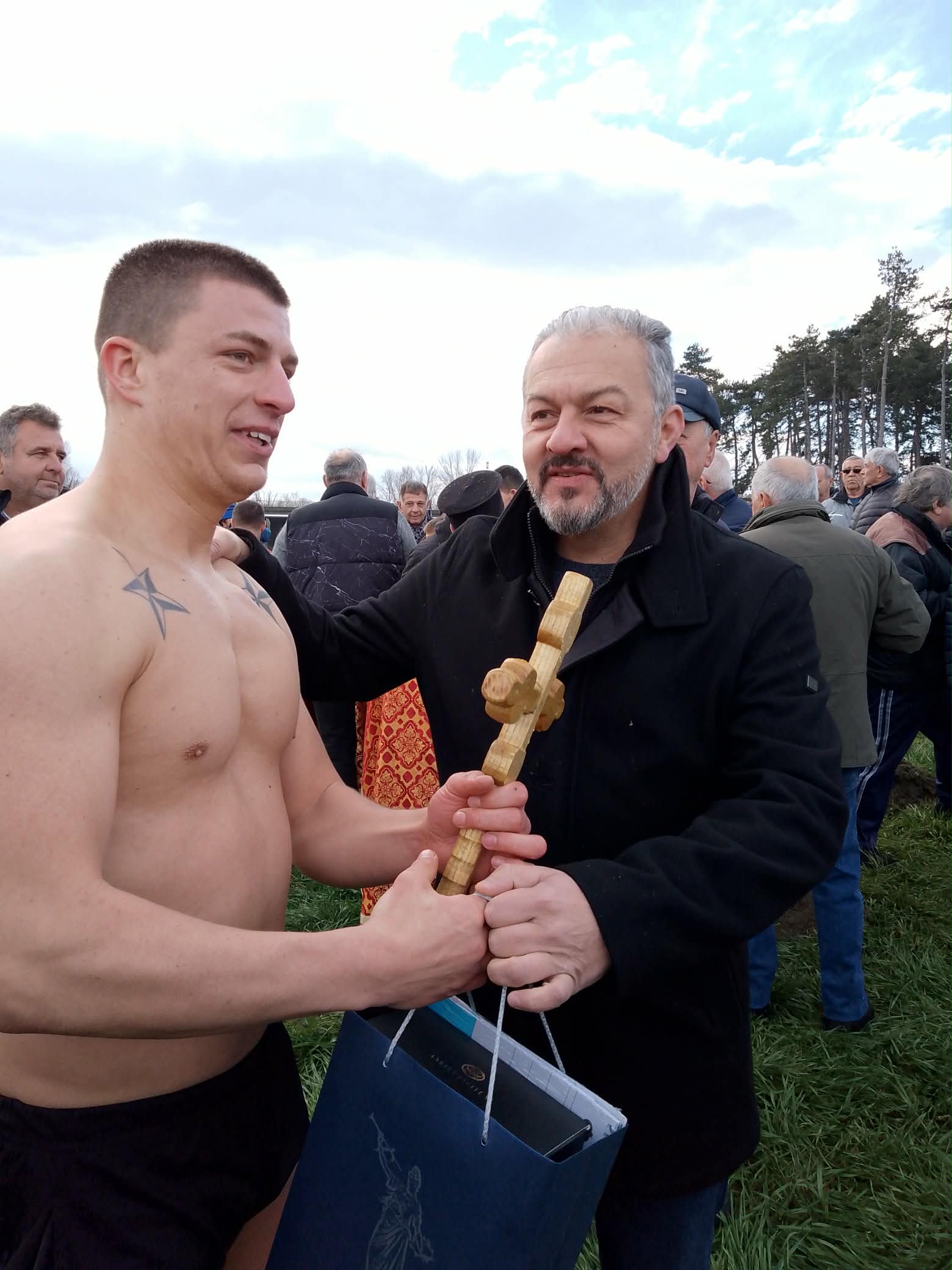 „Чувствам се страхотно, скачам за здраве! Искам здраве не само за моето семейство и близки приятели, но и за целия град. Да имаме година без проблеми и да вървим напред“, заяви Симеон Спасов, който участва за шести път в Богоявленския ритуал и за трети пореден път спасява кръста. Това стана в присъствието на цялото му семейство, близки и приятели и шестмесечната му дъщеря Светозара – „най-голямото ми щастие“.