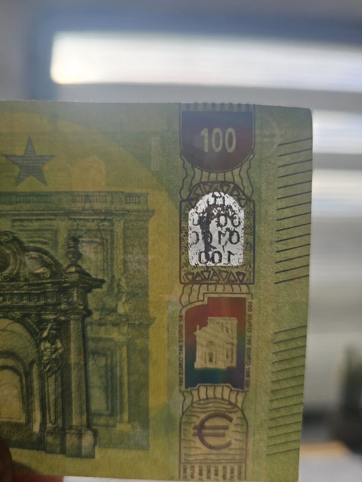Истинската евробанкнота се усеща, вижда и реагира при накланяне. Ако не – не я приемайте!
