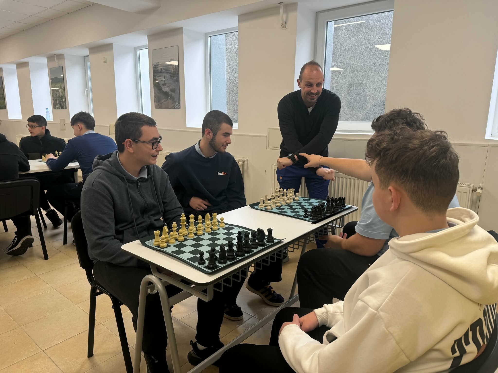 За шахматната надпревара в актовата зала се събраха 26 майстори на стратегията, от VIII до XII клас. След оспорвани партии, ето на почетната стълбичка застанаха Александър Данчев (10 „г“), Станислав Тодоров (9 „а“) и Михаил Маринов (11 „а“). Организатори на проявите бяха преподавателите по физическо възпитание Стефан Кацарски и Тихомир Тотев.