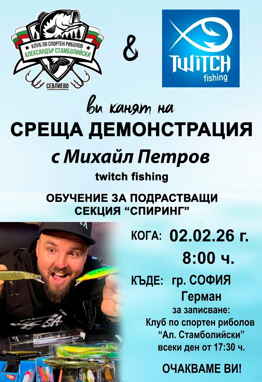 Клуб по спортен риболов „Александър Стамболийски“ отправя покана за едно ексклузивно събитие, което ще промени играта на вода на спининг маниаците. Събитието ще се проведе в село Герман на 2 февруари, от 8.00 часа. Специален гост ще бъде Михаил Петров (Twist Fishing). Подготвена е жива демонстрация, в която един от най-добрите специалисти в джиг риболова и модерната електроника ще сподели своя опит директно от „кухнята“.