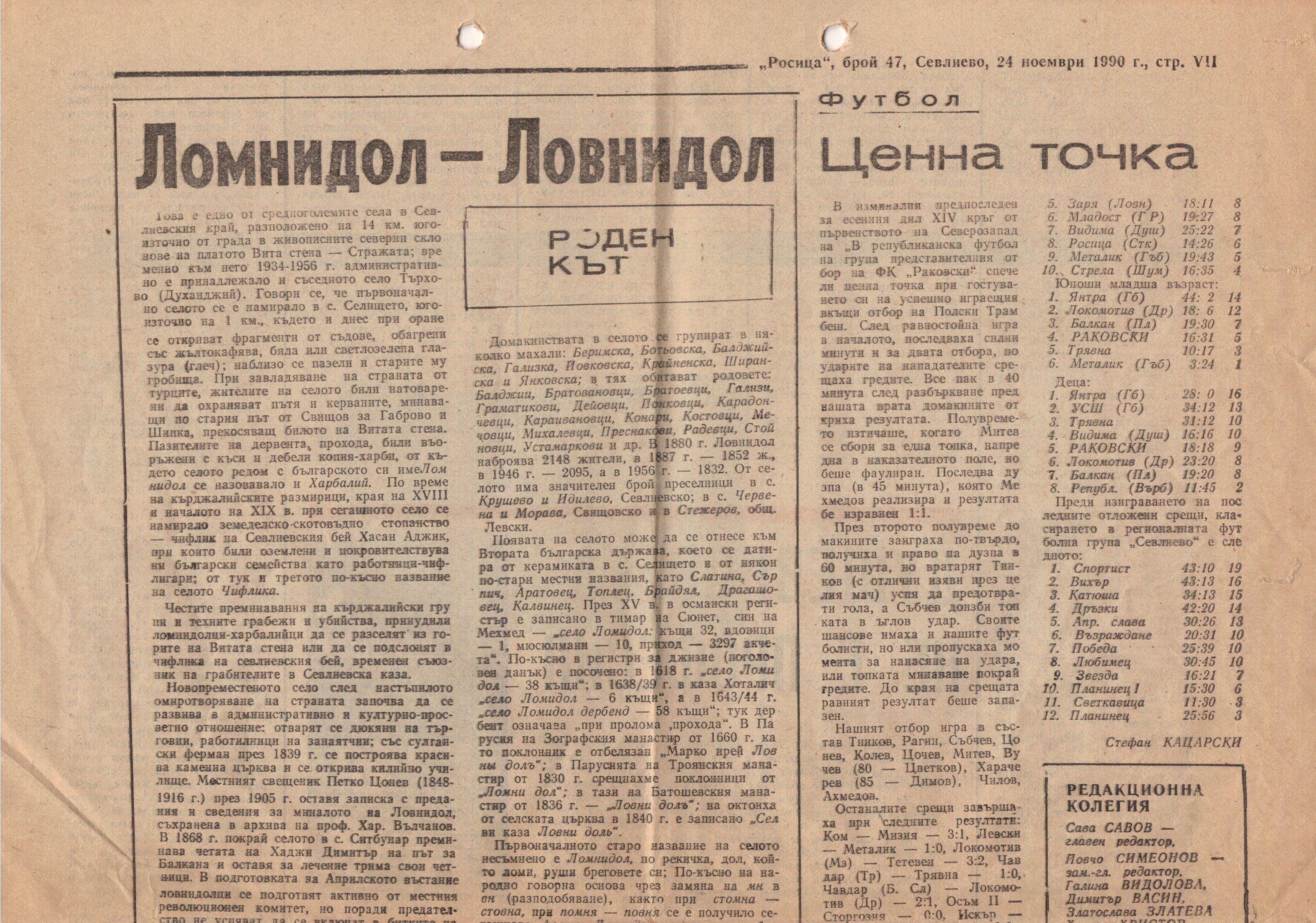 Погледът ми спира на един брой от вестник «Росица», 24 ноември 1990 година, брой 47. В него голяма статия, наречена «Ломнидол- Ловнидол» в рубриката «Роден кът».
