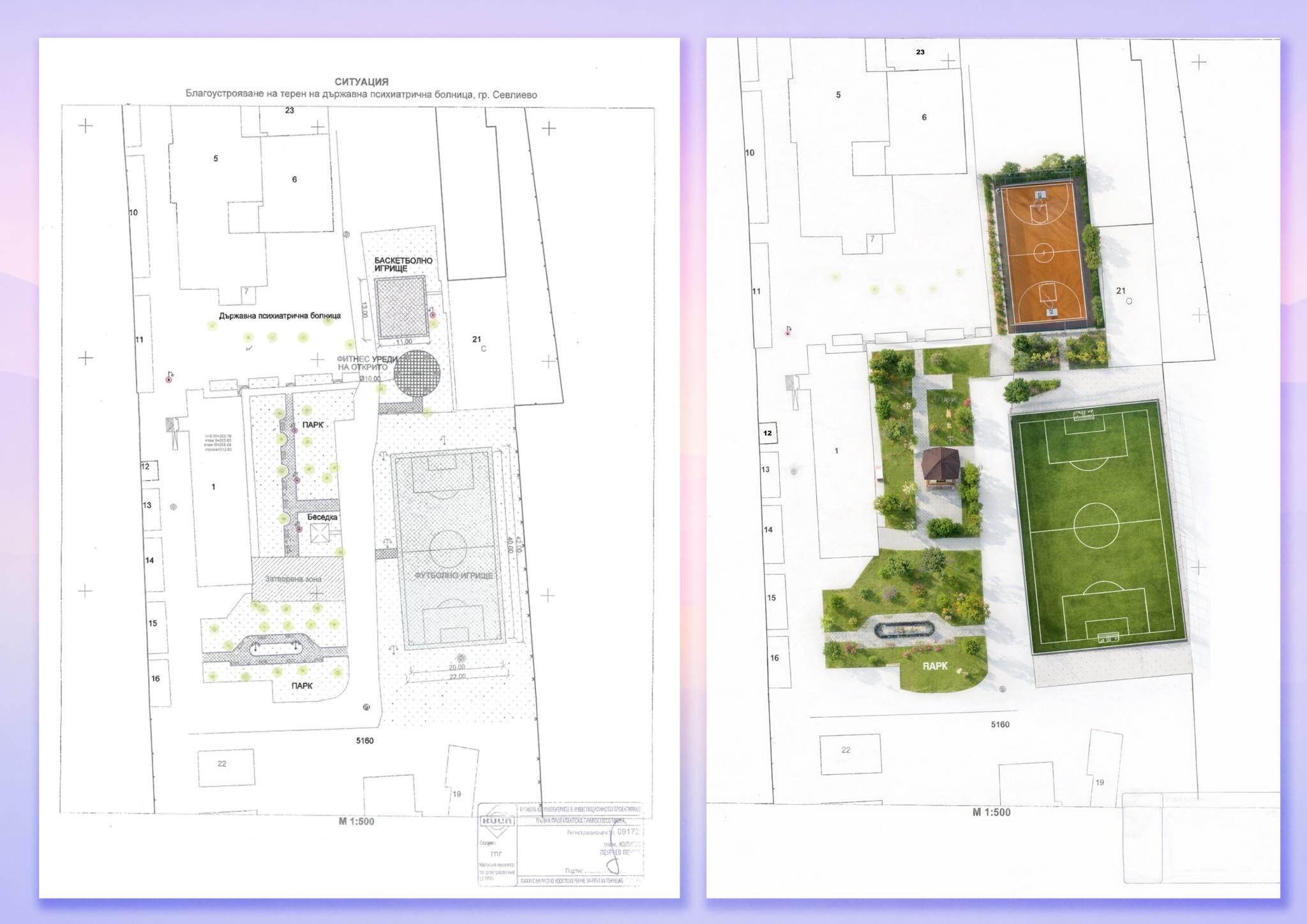 „Планираме изграждането на игрища за футбол и баскетбол: футболно и баскетболно игрище; поставянето на фитнес уреди на открито; изграждането на парк с беседки за отдих и общуване