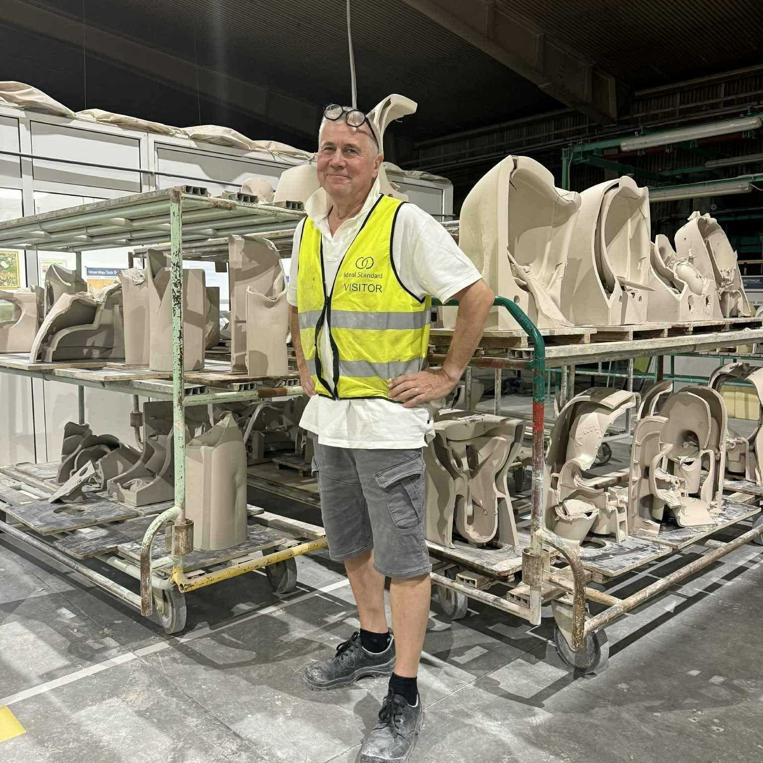 -Аз съм запознат с технологията на керамиката. Преди години Христо Йонков, директорът на керамичното училище в Троян ме е канил на пленери, където сме правили керамики с колеги, които не са керамисти, но правят керамика. Тогава направих една серия, която имаше успех, но след това него го пенсионираха. Но аз винаги съм си мислил, че бих могъл да направя нещо в завода за производство на санитарна керамика, но не бях сигурен какво точно ще бъде то, защото знам, че това са индустриални, поточни линии. Имах невероятния шанс Хина Лешке да ме запознае с директора Валентин Ганев, а той веднага ме свърза с Милен Иванов, технически експерт, който ме въведе в производството на керамичния завод.