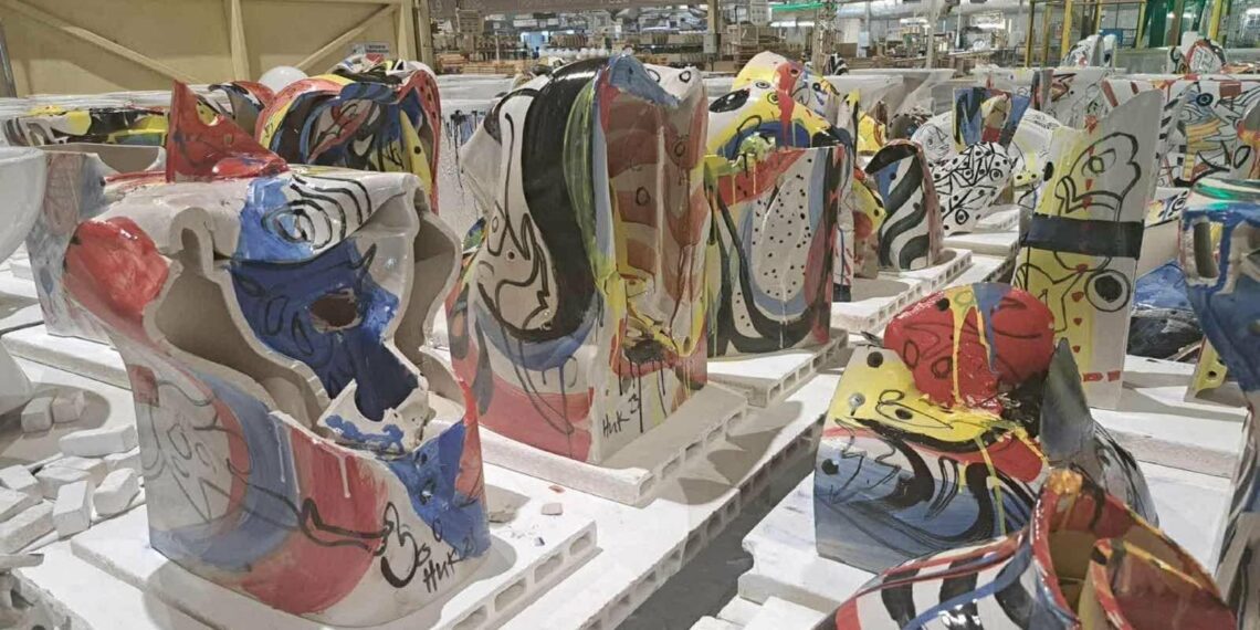 -Аз взимам някакъв продукт – мивка или тоалетна чиния, който е мек – току що е излязъл от пресата и веднага го формирам в нещо друго. Правя го на абстрактна скулптура и след това той минава през процес на глазиране от мен, и изпичане.