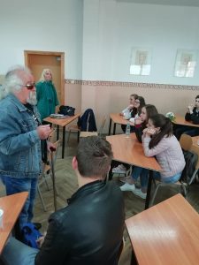 Учениците от горната степен се възползваха от уникалната възможност да се срещнат лице в лице с поети от литературния кабинет „Пеньо Пенев“ при читалище „Развитие-1870“. Димитър Васин – председател на литературния кабинет, беше гост в 10 „а“, 11 „в“ и 12 „в“ класове, където в непринуден разговор с учениците, им показа необходимостта от четене, от поезия и изкуство. Те споделиха с него свои есета, разказаха учени новели и взаимно си доказаха ползата от стойностните творби.