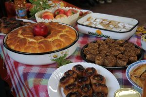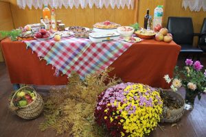А кой така силно и настоятелно тропа по вратата. Всички се обърнаха и даже се постреснаха, а други изобщо не познаха дегизиралата се като бабата-лъжкиня от приказката за Снежанка, Ирина. Тя раздаде на всички по една ябълка и прикани на трапезата, която ми е трудно да опиша. В средата кравай – а в него, червена ябълка. Добре се е сетила Анка Ангелова, доказала се като майстор на погачи, да се представи с нещо соленичко. Богати и разнообразни бяха блюдата с ябълкови специалитети. Ябълкови пити, кексове, ябълкови щрудели с локум, стафиди и орехи, чийзкейкове, ябълково-целувчени пайове. Печените, с кафява коричка ябълки, бяха неустоими. Ябълков оцет също не липсваше. А една жена като пчеличка хвърчеше насам-натам и обслужваше всички. Ту ябълкова ракия ще налее, ту натурален ябълков сок и такъв, ароматизиран с индрише. Такава е Ганка Иванова. Накрая все така тихо ще помогне да се отсервира, да се почисти.