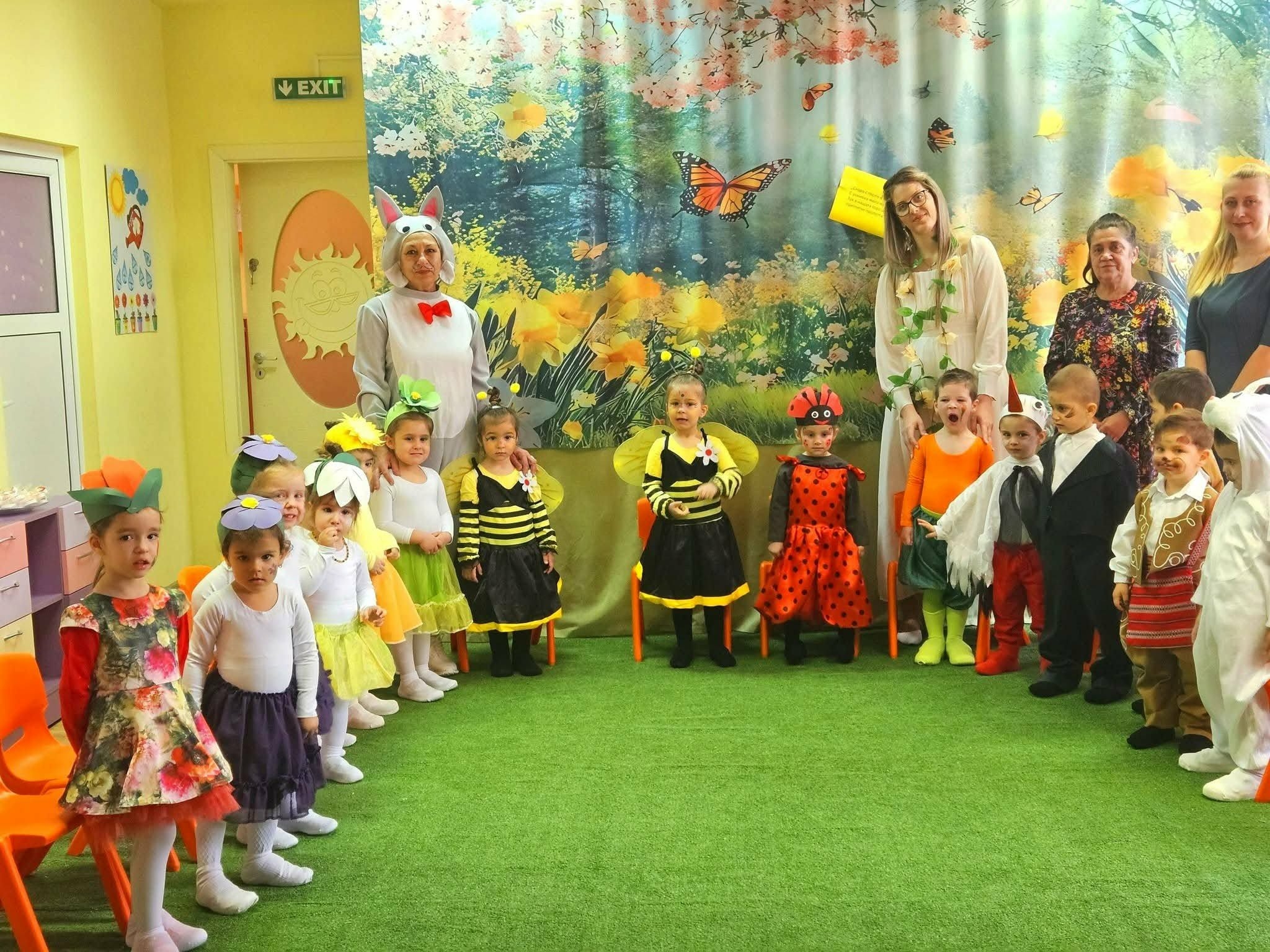 В истинска пролетна приказка се превърнаха децата от първа група „Слънце“, на ДГ „Радост“. За празника на жената – 8 март, те бяха облечени и нарисувани като красиви пролетни цветя и горски животни.