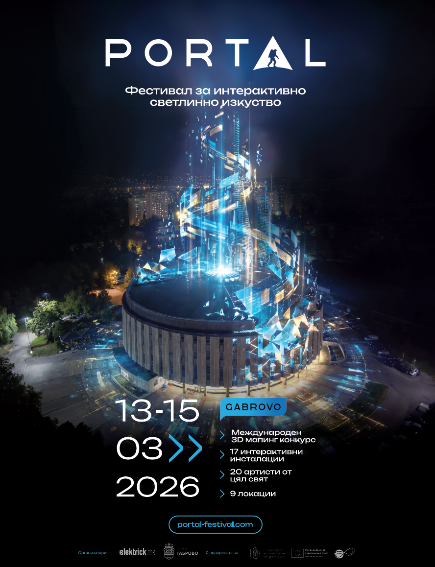 PORTAL е нова инициатива на Elektrick.me, която се осъществява като част от проектното предложение на Община Габрово „Точка на пресичане“ – среща между различни жанрове, култури, поколения и публики, Договор № BG-RRP-11.021-0008-C01/29.10.2025 г., „Ново поколение местни политики за култура за големи общини“, финансирана от Механизма за възстановяване и устойчивост чрез Национален фонд „Култура“.