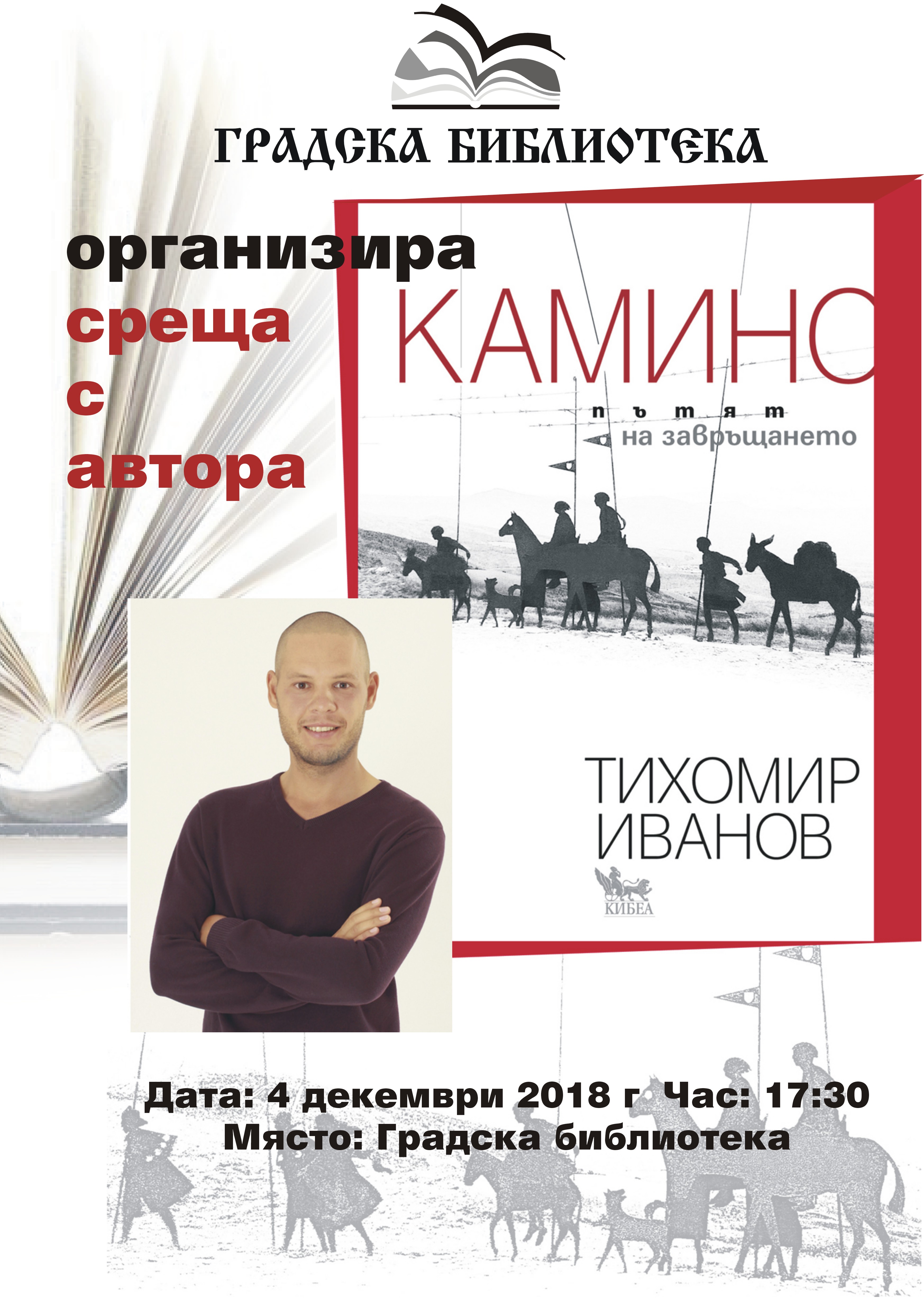 Експериментален литературно-хибриден жанр, с чертите на остър психологически пътепис, „Камино. Пътят на завръщането“ ще докосне читателя с оголения нерв на една страстно жадувана духовна трансформация. А какво е преживял авторът по дългия път, ще научите лично от него на срещата в Градската библиотека, 4 декември (вторник), 17:30 ч.