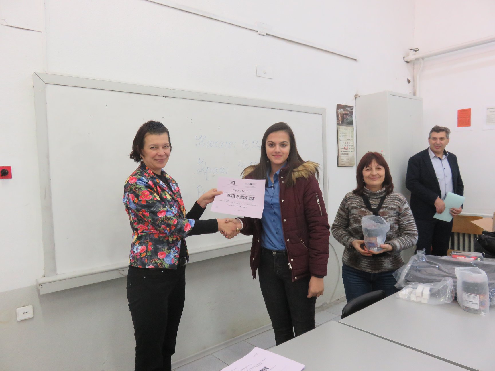 Класирането в първата възрастова група отреди първото място за Драгомир Маринов, втори стана Георги Димитров 10 „а“, а трети – Мартина Михайлова, все ученици от 10 „а“ клас. Първи във втората възрастова група се класира Мартин Милков от 12 „а“ клас, втори – Даниел Гълъбов от 11 „г“, а трети – Стилиян Илиев от 11 „а“. Инж. Детелина Иванова връчи на всички участници грамоти и предметни награди, осигурени от фирма „ЕЛИМЕКС“, а училището получи подарък – макет „Цифрова логика“ за часовете по професионална подготовка.