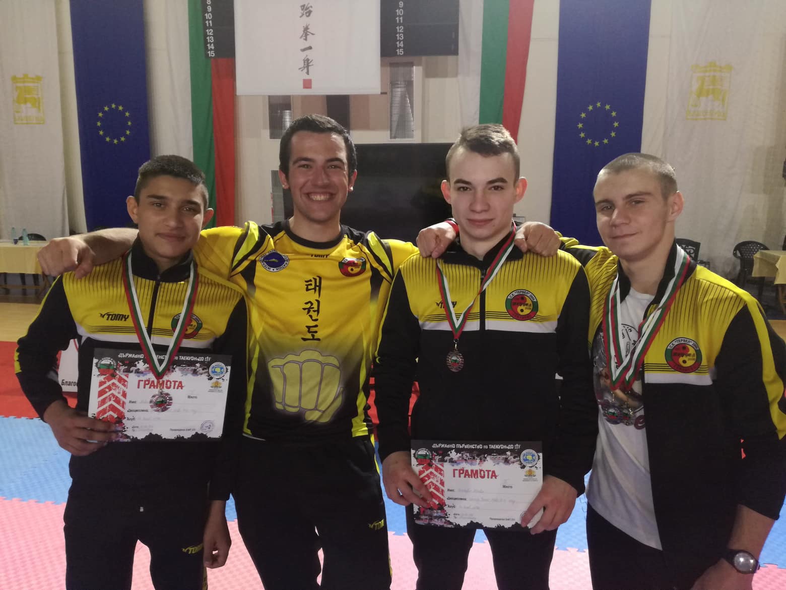 На първото място на почетната стълбица се качи Ферай Ахмедова на форма 4-3 гуп. Таекуондистката спечели и сребърен медал на спаринга при момичетата до 40 кг. Златно отличие завоюва и Християн Пеев при юношите на форма 1-2 гуп. Той се класира и трети на спаринг до 63 кг. Абсолютен шампион стана и Юсеин Юсменов при мъжете на форма 4-3 гуп. Два сребърни медала завоюва от Държавния шампионат Николай Василев на спаринг при 85-килограмовите и на форма 1 дан при мъжете. На второто място се класира и Ивайло Мерджанов при най-малките момчета на форма 6-5 гуп.