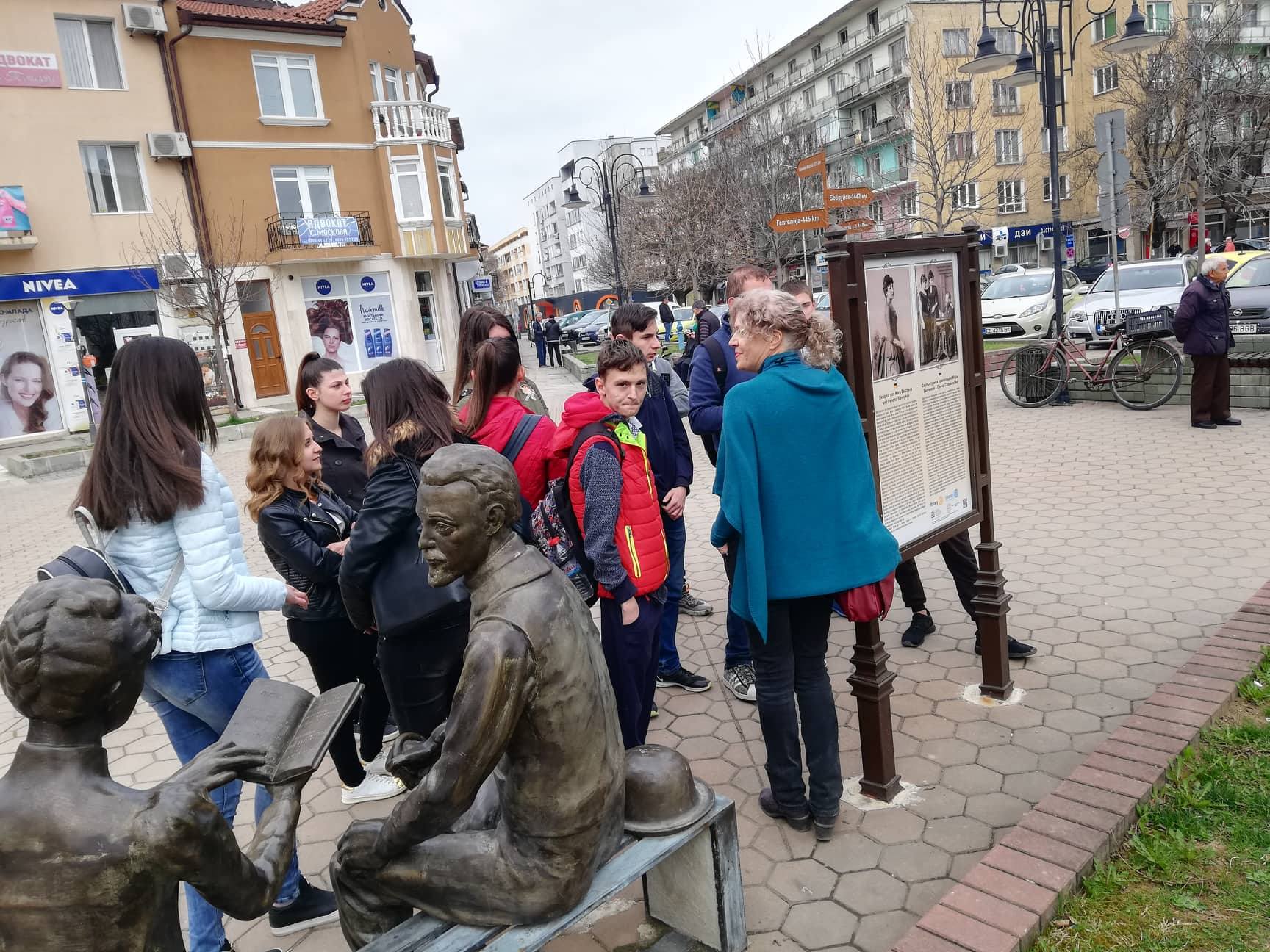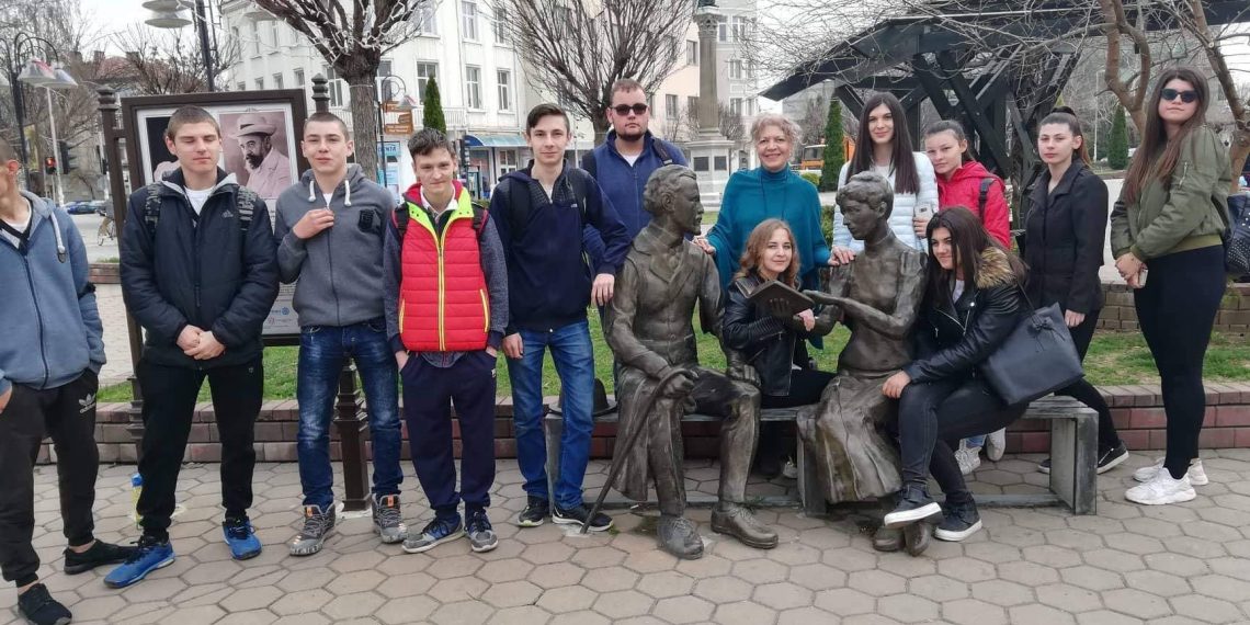 Съвсем различен беше урокът за жизнения и творчески път на двамата – поет и поетеса, свързали се в реалния и в духовния живот пред бронзовите им фигури, отколкото уроците в класната стая. За минувачите явно също беше интересно това изнесено обучение, защото те не само се обръщаха, привлечени от интереса на учениците към скулптурната композиция, но и спираха да послушат беседата на учителката.