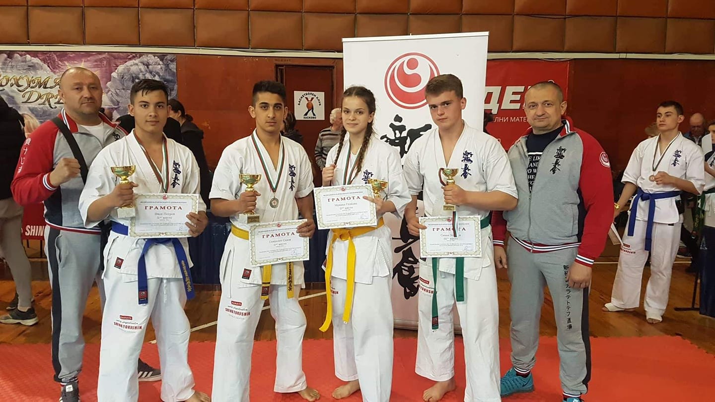 С нови четири медала севлиевските каратеки дообогатиха колекцията с призови отличия на Севлиево. Възпитаниците на сенсей Тихомир Тотев участваха в националното първенство по карате шинкиокушин за юноши и девойки, кадети и кадетки. Надпреварата се проведе в Хасково през уикенда.