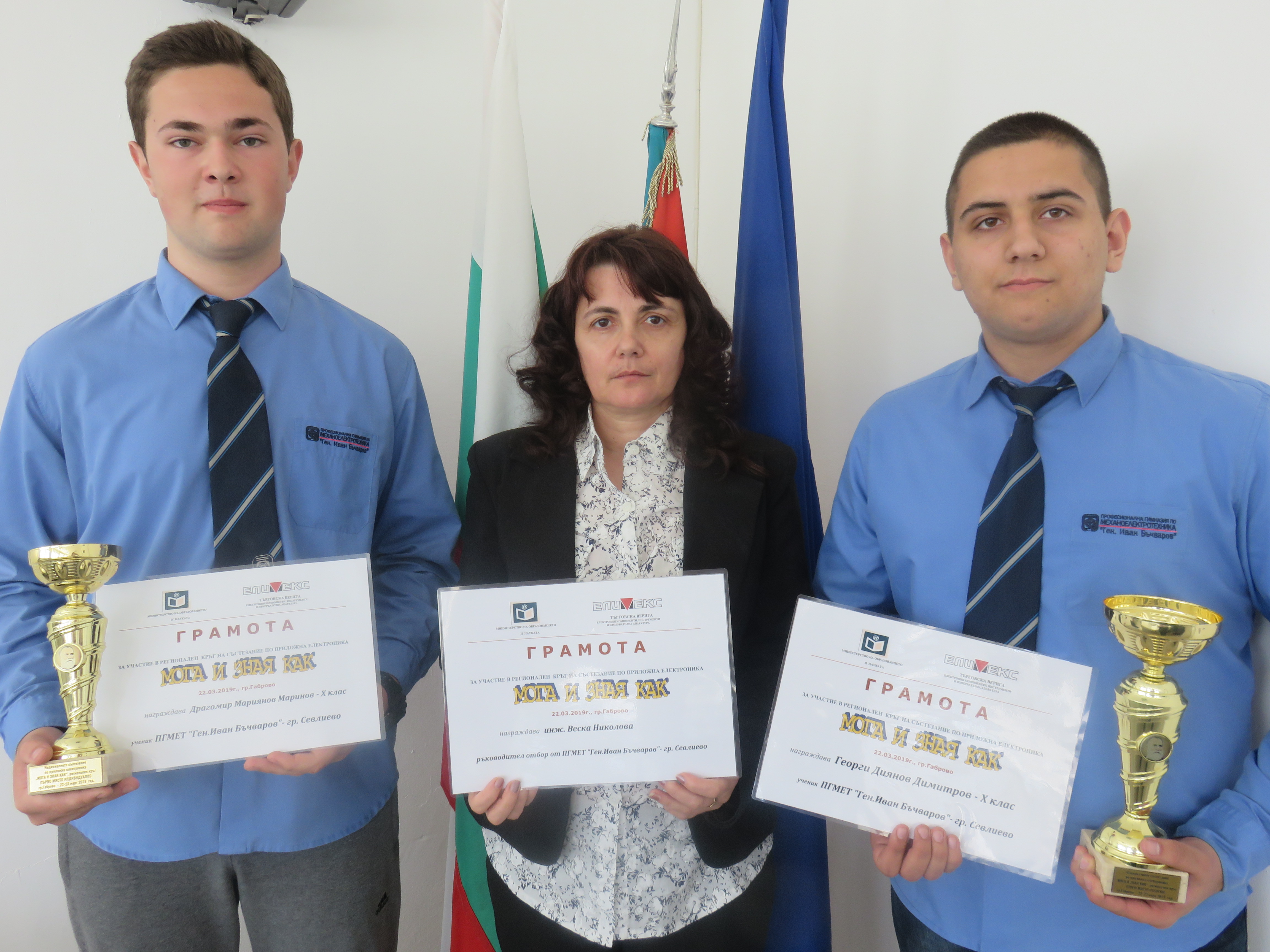 Ученикът на ПГМЕТ „Ген. Иван Бъчваров“ Драгомир Маринов стана първи в националното състезание по приложна електроника „Мога и зная как“. За пръв път възпитаник на Механоелектротехникума в Севлиево се класира на толкова престижно място в индивидуалното класиране. Драгомир Маринов и неговият съученик Георги Димитров от 10 „а“ клас заеха второто място в отборното класиране, което ги изпрати на финалния кръг. Там те ще премерят сили с шестте най-добри отбора в България.