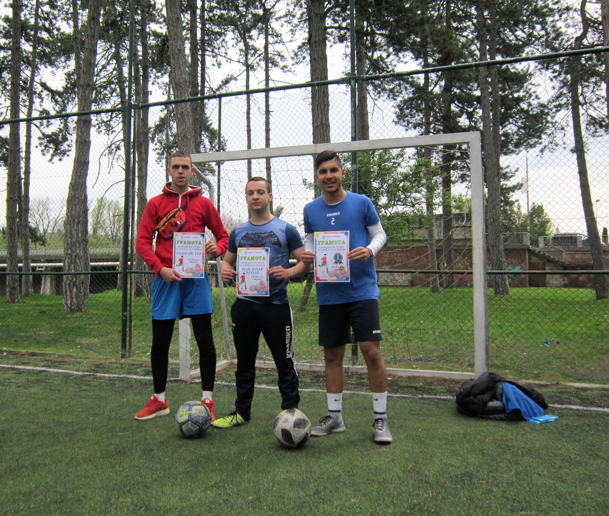 При най-големите нямаше интрига в спора за първото място. Юношите на ПГМЕТ, водени от Стефан Кацарски, не изпитаха затруднения и постигнаха чисти победи и над трите отбора. За отбелязване е и фактът, че тимът си тръгна със суха мрежа, за което Милко Керемидчиев заслужено получи грамота за „Най-добър вратар“. Подреждането на останалите три отбора се реши в последната среща между СУ и ПГ „М. Попов“. Тук тимът, воден от Даниела Калчева, беше с по-голямо желание за игра и победа, и заслужено с два гола на Хакан Халми и Албен Христов се поздрави с победата. Трети стана отборът на Гимназията по транспорт и машиностроене в Градница. Голмайстор с четири попадения стана Стелиян Илиев от ПГМЕТ, а призът за „Най-полезен играч“ взе Албен Христов от ПГ „М. Попов“.
