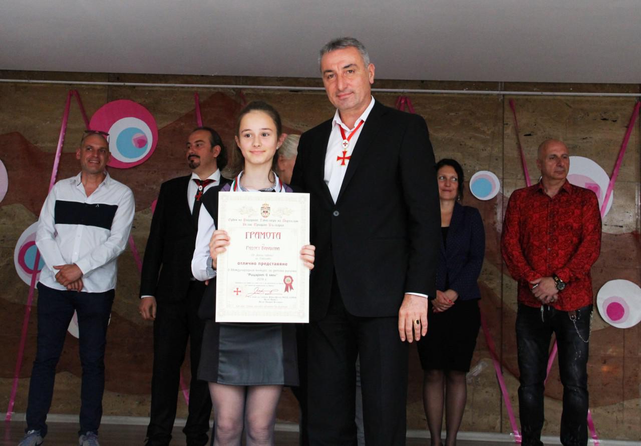 Златен медал и диплом за отлично представяне спечели Радост Бакалова от международния конкурс за детска рисунка „Рицарят в мен“. Шестокласничката от СУ „Васил Левски“, с преподавател Иван Иванов, е сред талантите, класирали се за националния етап на надпреварата, организирана от Ордена на рицарите тамплиери на Йерусалим Велик Приорат България. Наградите на победителите бяха връчени на 1 юни в Националния дворец на децата в София.