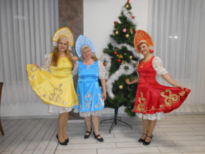 И всичко си тръгна по сценарий, който много скоро беше разчупен и всеки се почувства разкрепостен да поднесе поздравления, да изпее любима песен, да участва в забавните игри и разигралата се томбола, които организаторите на празника – Наташа Колева, Галя Вълкова и Галя Рачева бяха подготвили. За създалата се още в началото непринудена и споделена атмосфера допринесе не само водещата Емилия Неделчева, но и компактната маса руснаци, свързали завинаги съдбата си с града ни, но скътали на най-сакрално място в сърцето си образа на родната Русия. Популярни хитове на руската естрада, изпълнени от певеца Цветан Гочев, професионалното и чувствено изпълнение на руски песни от станалото вече традиционно гостуване на трио „Звън“, дръзката музика на поета бунтар Владимир Висоцкий и … горещи български хора. Всичко се сля в едно и нежежи страстите. Като се прибавят и хубавата вечеря, един микс от традиционни български и руски ястия, като не липсваше и типичното за Руската Нова година ястие кутя, приготвено от ориз, стафиди и орехи, леко овкусено със захар, наздравиците и приятелското общуване.