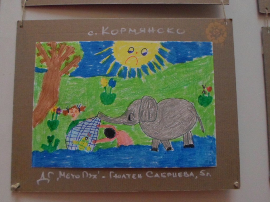Рисунка на 5-годишната Гюлтян Гюнайдинова Сабриева, посещаваща детската градина в с. Кормянско, бе включена в изложба, открита преди дни в Народното събрание. Творбата на момиченцето е вдъхновена от представление на екоспектакъла „Приключенията на слончето Слай и приятели“ и е нарисувана под ръководството на старши учител Силвия Попова.