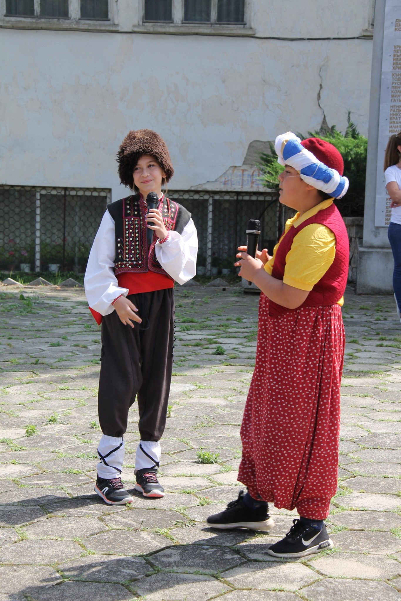 Трудолюбиви и честни хора са българите, почитат 10-те божи заповеди. Но кои са по-хитри – турците или българите, показаха Тодор Христов и Рамона Божидарова от Детската театрална школа при ДК „Йовко Йовков“, с ръководител Калинка Иванова, които представиха сценка по приказки за Хитър Петър и Настрадин Ходжа. А през това време млада туркиня /Шермин Адил Ахмед/, с типичната визия на някогашния идеал за красавица, обикаляше из публиката и си търсеше… жених. Тук жених, там жених и като не намери подходящия човек, току грабна „подручка“ чалмалията Настрадин Ходжа. Е, все пак си е ходжа. Хайде, да е на хаирлия, както се казва. С хубава народна песен и съпровод на Николай Колев, малката крушевка Никол Иванова също поздрави присъстващите.