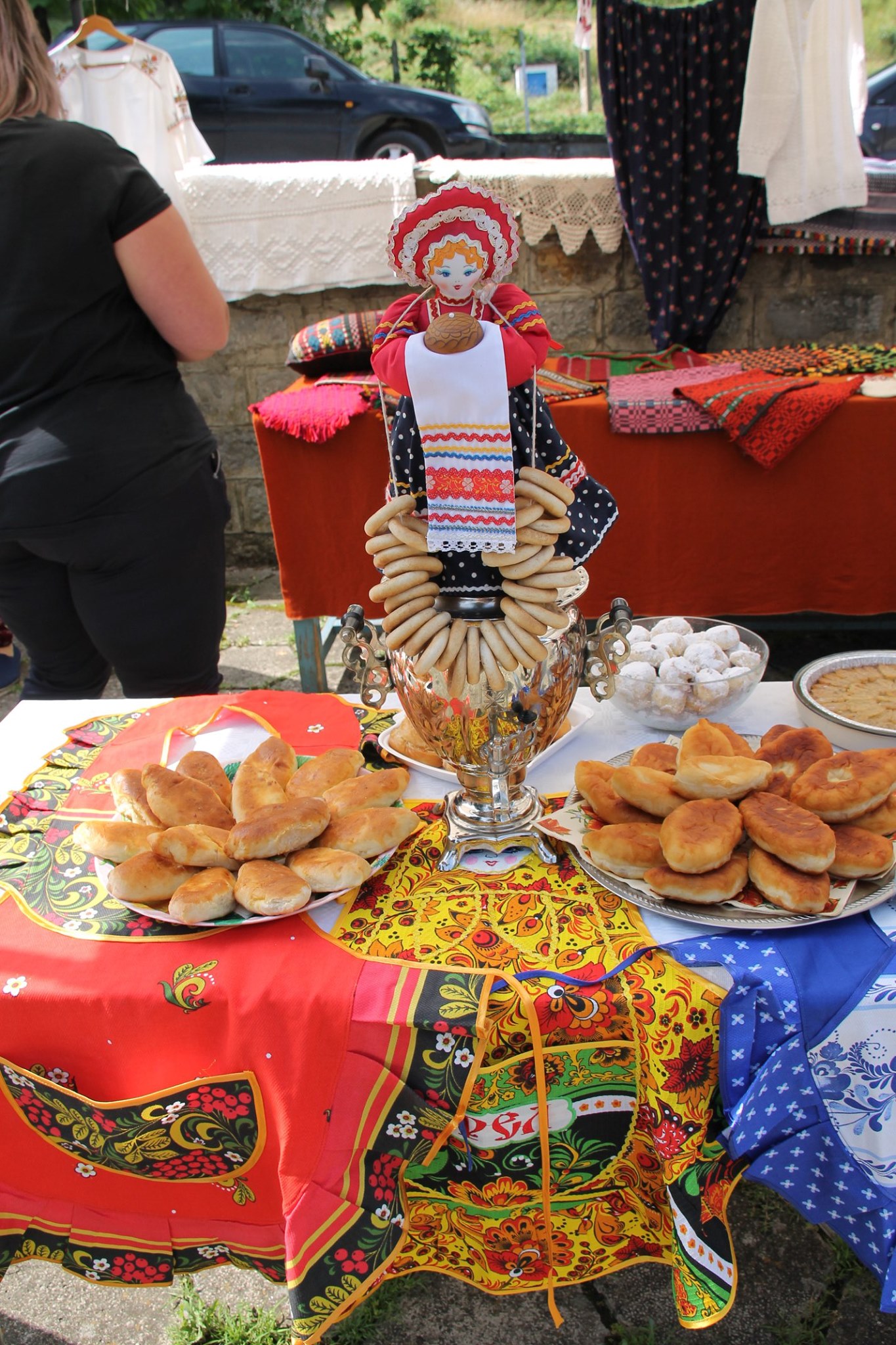 През всичкото това време скарата димеше, шатрите белееха, а под тях – маси с кулинарни вкусотии привличаха с аромата си. Баклави, потънали в сироп и поръсени със зелени кокосови стърготини, сладки курабийки и „Мамината торта“, дърпани баници, тутманици и погачи, сърмички, прясно сирене, кътък и боб в гърне и „руски пирожки“. А пълнените печени пиперки на „шеф“ Илия Илиев – кметът, с богата заливка от яйца и кисело мляко, се оказаха далечна дестинация за мнозина желаещи да опитат от кметския кулинарен майсторлък. Бяха изложени и предмети от бита на различните етноси – нежни миленца и покривчици на една кука, шарени плетени турски чорапи, българска носия и „руска кукла“. Истинско умиление предизвика едно трикрако дървено столче, на което децата се изреждаха да сядат и падат от него.