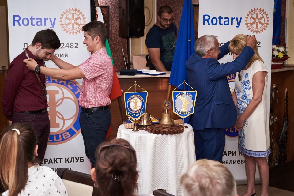Досегашният президент на Ротари клуб Севлиево Тома Томев предаде символа на организацията – огърлицата, на Мария Петрова. Бъдещият единайсетокласник от СУ „Васил Левски“ Калоян Тодоров пък пое ръководството на Интеракт клуб от Веселин Конов. Ръководства на двата клуба бяха сменени на специална съвместна церемония, състояла се този понеделник в хотел „Хелиос“. Новите президенти ще заемат постовете си до 1 юли 2020 г.