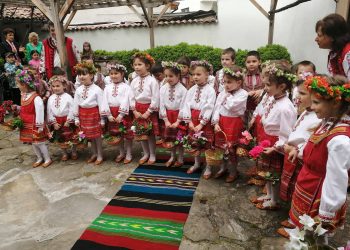 5-годишните момичета и момчета от детска градина “Слънце 2“ наричаха за здраве и благоденствие, пяха и танцуваха в двора на ...
