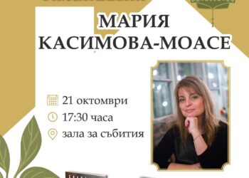 Мария Касимова-Моасе гостува в Севлиево от Вестник Росица 21.10.2024 0 Поредната вълнуваща среща ще предложи Градска библиотека - Севлиево на четящите хора от града на 21 октомври, от 17:30 часа. ...