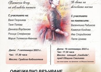 „Поетична вечер на севлиевски поетеси” от Вестник Росица 05.09.2023 0 „ПОЕТИЧНА ВЕЧЕР НА СЕВЛИЕВСКИ ПОЕТЕСИ” е първото събитие, организирано от Община Севлиево и Градска библиотека през месец септември, посветен на ...