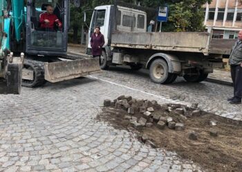 Започна пренареждането на паважа на ул. “Стефан Пешев”, въведен е обходен маршрут